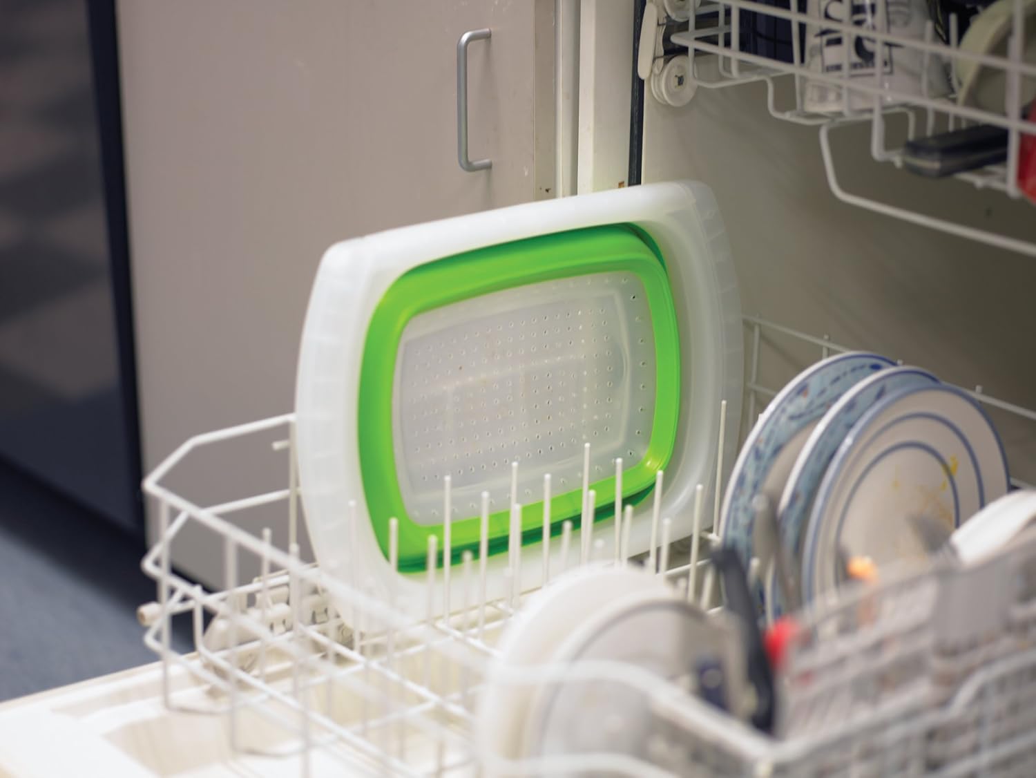 - 6-Quart capacity, drains liquids quickly and easily, green/transparent color